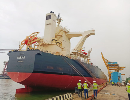 Since the commissioning of UPCL Jetty(Berth No-15) at NMPA . The UPCL received the CAP vessel(MV URJA) for the first time carrying 80000MT. We have tried to deploy an excavator in hatch cleaning activity for the first time and we have successfully finished the vessel.